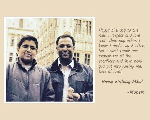 Happy birthday to the man I respect and love more than any other. I know I don’t say it often, but I can’t thank you enough for all the sacrifices and hard work you put into raising me. Lots of love! Happy Birthday Abbu! -Mohsin