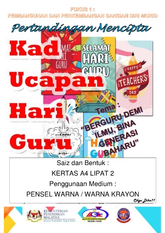 Saiz dan Bentuk : KERTAS A4 LIPAT 2 Penggunaan Medium : PENSEL WARNA / WARNA KRAYON Cikgu Diha77 Tarikh Tutup : 14 MEI 2020 ( KHAMIS ) UNIT PERKHIDMATAN BIMBINGAN DAN KAUNSELING