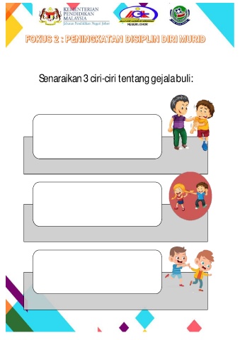 Senaraikan3 ciri-ciri tentanggejalabuli: