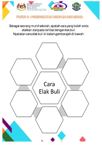 Sebagai seorang murid sekolah, apakahcarayang boleh anda elakkan daripadaterlibat dengankesbuli. Nyatakan caraelakbuli di dalamgambarajahdi bawah: Cara Elak Buli