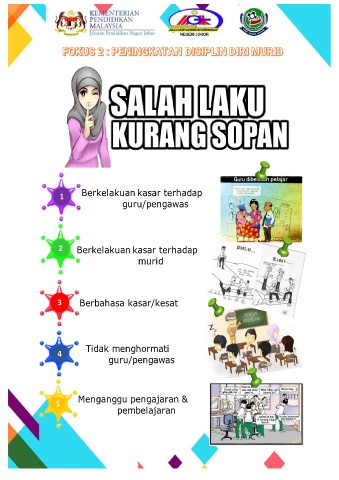 SMK SENAI Berkelakuan kasar terhadap 1 guru/pengawas 2 Berkelakuan kasar terhadap murid 3 Berbahasa kasar/kesat Tidak menghormati 4 guru/pengawas Menganggu pengajaran & 5 pembelajaran