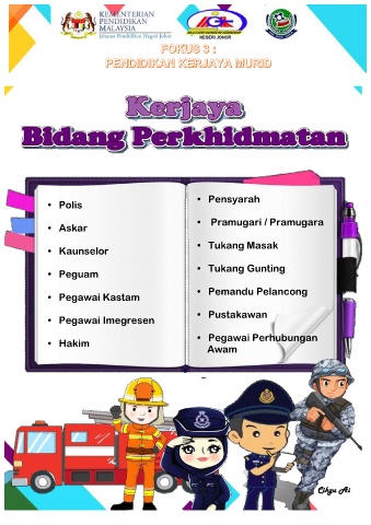 • Pensyarah • Polis • Askar • Pramugari / Pramugara • Kaunselor • Tukang Masak • Peguam • Tukang Gunting • Pemandu Pelancong • Pegawai Kastam • Pustakawan • Pegawai Imegresen • Pegawai Perhubungan • Hakim Awam Cikgu Ai