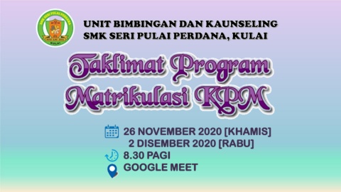 26 NOVEMBER 2020 [KHAMIS] 2 DISEMBER 2020 [RABU] 8.30 PAGI GOOGLE MEET