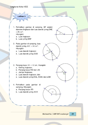 e.  Luas daerah juring KQL, KQM, dan LQM