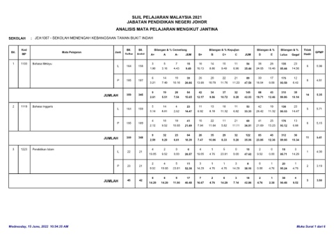 Kod Bil. Bil. Bilangan & % Cemerlang Bilangan & % Kepujian Bilangan & % Bilangan & % Tidak
