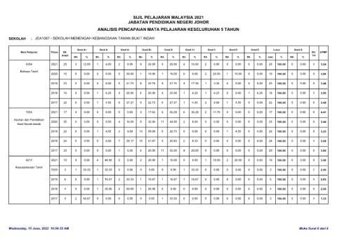 ANALISIS PENCAPAIAN MATA PELAJARAN KESELURUHAN 5 TAHUN