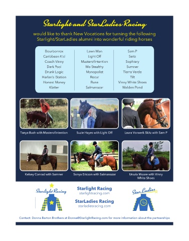 Contact: Donna Barton Brothers at Donna@StarlightRacing.com for more information about the partnerships