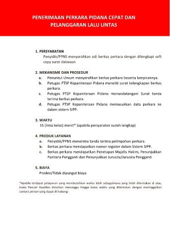 PENERIMAAN PERKARA PIDANA CEPAT DAN