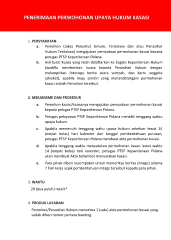 PENERIMAAN PERMOHONAN UPAYA HUKUM KASASI