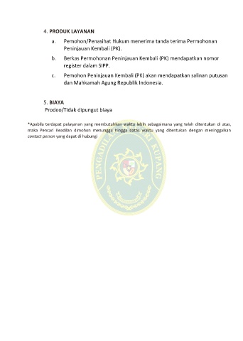*Apabila terdapat pelayanan yang membutuhkan waktu lebih sebagaimana yang telah ditentukan di atas,