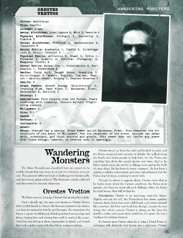 Notes: Orestes has a special Dread Power called Ephemeral Flesh. This requires the ex-