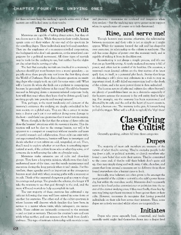 of careful research and collaboration. Since cults can exist with- Generally speaking, cultists fall into three categories: