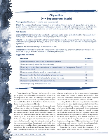 further citywalking attempts that day suffer a -3 penalty. These restrictions fade once the character sleeps for