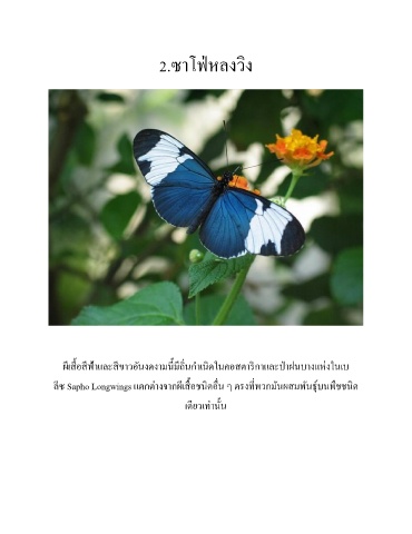 2.ซาโฟหลงวิง ่ ่ ี ิ ิ ิ ี ี ี ื ี ผเส้อสฟาและสขาวอันงดงามน้มถ่นก าเนดในคอสตารกาและปาฝนบางแห่งในเบ ้ ่ ่ ี ื ิ ื ี ี ิ ุ ์ ลซ Sapho Longwings แตกต่างจากผเส้อชนดอน ๆ ตรงทพวกมันผสมพันธบนพืชชนด ี เดยวเท่านั้น