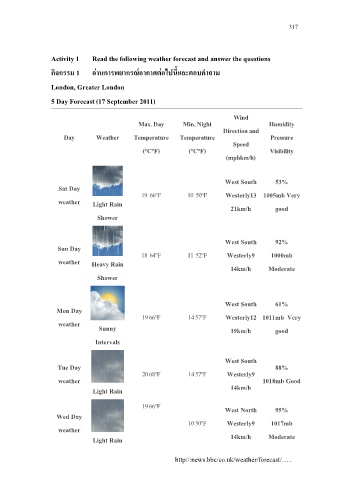 กิจกรรม 1 อานการพยากรณอากาศตอไปนี้และตอบคําถาม