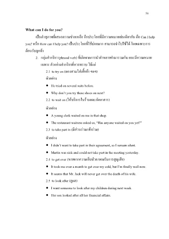 2. กลุมคํากริยา (phrasal verb) ที่เกิดจากการนําคําหลายคํามารวมกัน และมีความหมาย