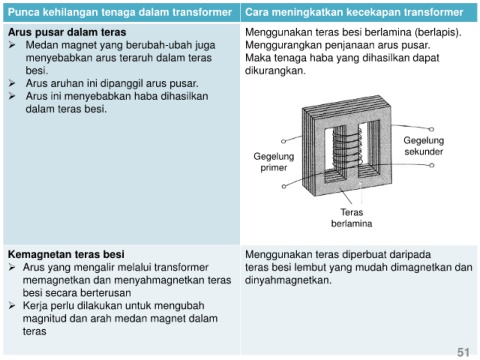 Arus pusar dalam teras Menggunakan teras besi berlamina (berlapis).