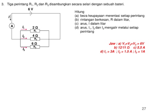 A I 1 2 Ω (d) arus, I , I dan I mengalir melalui setiap