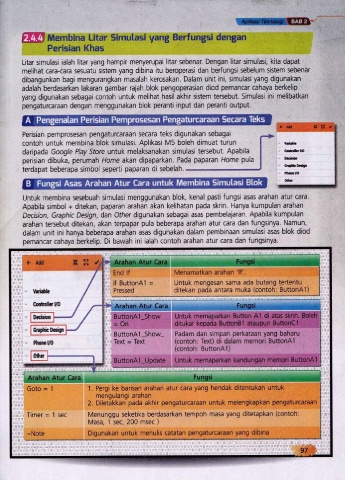 Untuk membina sesebuah simulasi menggunakan blok, kenal pasti fungsi asas arahan atur cara.