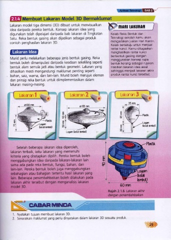 Satu. Reka bentuk gasing akan dijadikan sebagai produk Teknologi sekolah kamu akan