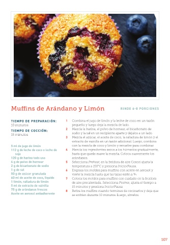 75 g de arándanos frescos 8 Retira los muffins cuando termines de cocinarlos y deja que
