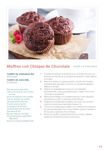 85 g de chips de chocolate 7 Retira los muffins cuando termine la cocción y déjalos
