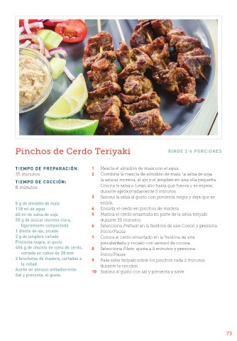 2 g de jengibre rallado 7 Coloca el cerdo ensartado en la freidora de aire