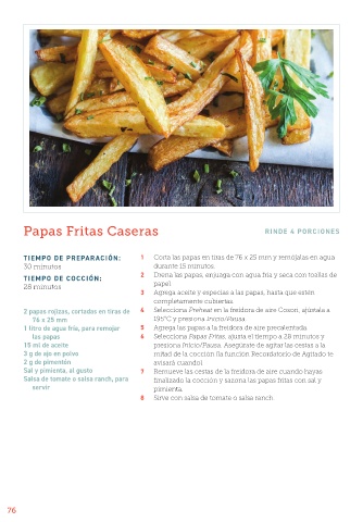 TIEMPO DE PREPARACIÓN: 1 Corta las papas en tiras de 76 x 25 mm y remójalas en agua