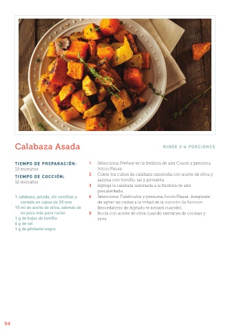 1 calabaza, pelada, sin semillas y 4 Selecciona Tubérculos y presiona Inicio/Pausa. Asegúrate