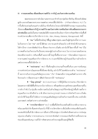 4 องคXประกอบเพื่อการบริหารจัดการ (4 Ms : Man, Money, Material, Management) ดังน