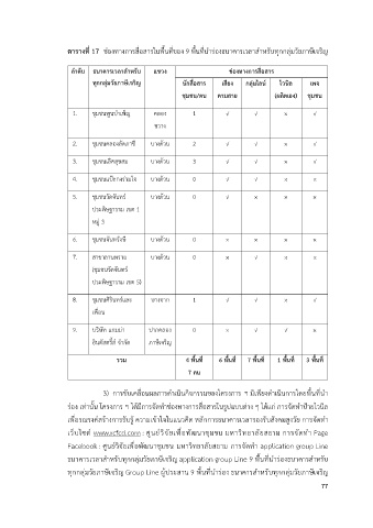ตารางท 17 ช7องทางการสื่อสารในพื้นที่ของ 9 พื้นที่นำร7องธนาคารเวลาสำหรับทุกกลุ7มวัยภาษีเจริญ