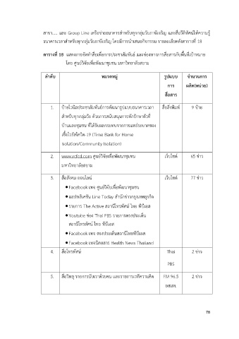 ตารางท 18 แสดงการจัดทำสื่อเพื่อการประชาสัมพันธX และช7องทางการสื่อสารกับพื้นที่เปtาหมาย