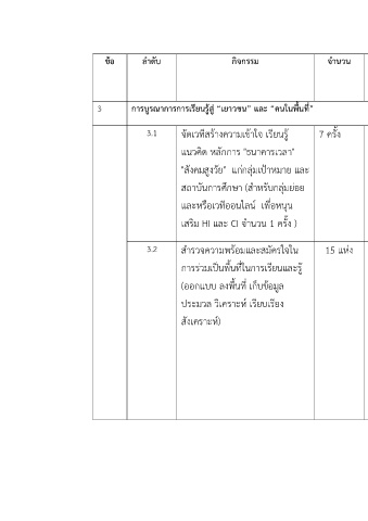 ข@อ ลำดับ กิจกรรม จำนวน ผลลัพธJ ปPญหาและอุปสรรค ภาคีเครือขVาย