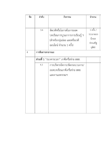 ข@อ ลำดับ กิจกรรม จำนวน ผลลัพธJ ปPญหาและอุปสรรค ภาคีเครือขVาย
