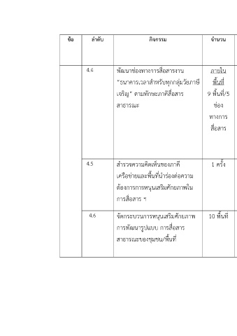 4.4 พัฒนาชAองทางการสื่อสารงาน ภายใน • แตAละพื้นที่มีชAองทางการ