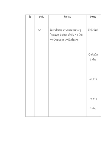 4.7 จัดทำสื่อสาร ผAานชAองทางตAาง ๆ สื่อสิ่งพิมพI • ศูนยIวิจัยเพื่อพัฒนา _ _