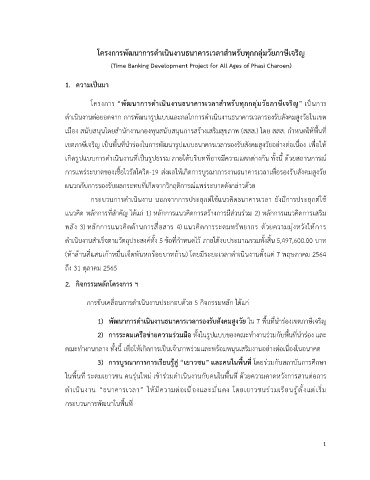 1) พัฒนาการดำเนินงานธนาคารเวลารองรับสังคมสูงวัย ใน 7 พื้นที่นำร0องเขตภาษีเจริญ
