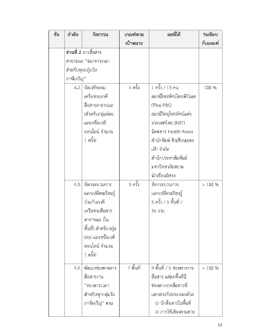ขiอ ลำดับ กิจกรรม เกณฑsตาม ผลที่ได i %เทียบ