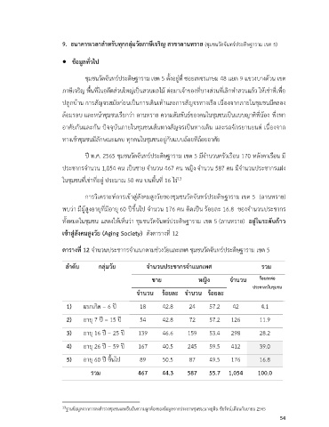 ตารางท 12 จำนวนประชากรจำแนกตามช0วงวัยและเพศ ชุมชนวัดจันทรSประดิษฐาราม เขต 5