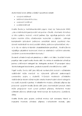 těchto kategorií dostáváme „znalosti studentů o kvalitě života u dětí“.