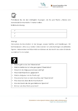 Formulieren Sie die drei wichtigsten Aussagen, die Sie zum Thema „Vebale und