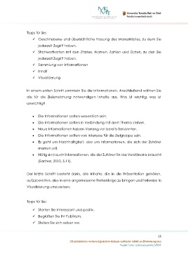 Die Informationen sollten in Verbindung mit dem Thema stehen.