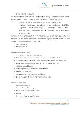Geschwindigkeit variieren, Gefühl hineinbringen. Keine Füllwörter, „Äh.“