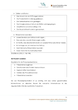 Bei der Produktpräsentation ist es wichtig, mit den vorher gesammelten