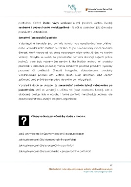 portfoliem, získává životní návyk uvažovat o své (profesní, osobní, životní)