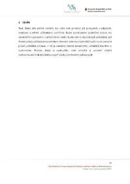 realizaci a reflexi učitelského portfolia. Bude podkladem společné práce na