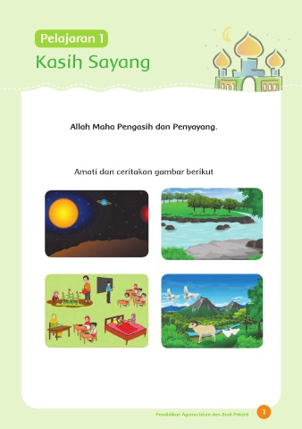 Pelajaran 1 Kasih Sayang Allah Maha Pengasih dan Penyayang. Amati dan ceritakan gambar berikut 1 Pendidikan Agama Islam dan Budi Pekerti