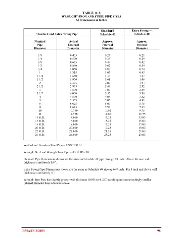 WROUGHT-IRON AND STEEL PIPE SIZES