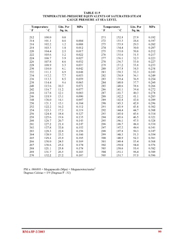 TEMPERATURE-PRESSURE EQUIVALENTS OF SATURATED STEAM