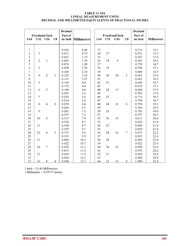 DECIMAL AND MILLIMETER EQUIVALENTS OF FRACTIONAL INCHES